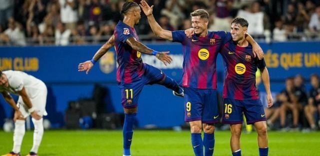 费尔明·洛佩斯、拉菲尼亚和莱万各自完成梅开二度,巴萨在我方新赛季首个主场6比0大捷瓦伦西亚,这是一场莫得亚马尔、德容、巴尔德的比赛,同期南好意思国脚一谈莫得首发,即便在这样的情况下,毁掉了“自夸”的巴萨照旧打出了上赛季的水平得回了大捷。