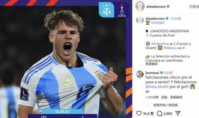效率于勒沃库森的阿根廷19岁前卫萨尔科,本届世青赛已打入4球,只媲好意思国队的克雷马斯基,以及哥伦比亚的比利亚雷亚尔少1球。若是萨尔科加冕世青赛金靴且匡助阿根廷夺冠,将复制梅西谢世青赛中的建设。而阿根廷打入4强后,梅西也在阿根廷社媒下面送去祝贺。