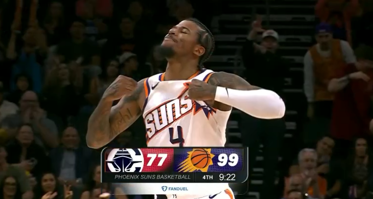 下半场,第三节布克和杰伦-格林带队打出36-13的超等攻势,已而晋升到20分,之后太阳哑火,快船8-0松开分差,格雷森-阿伦运输三分,三节打完太阳88-74晋升14分,这一节格林和布克合砍16分,太阳主场屡次纵容庆祝。